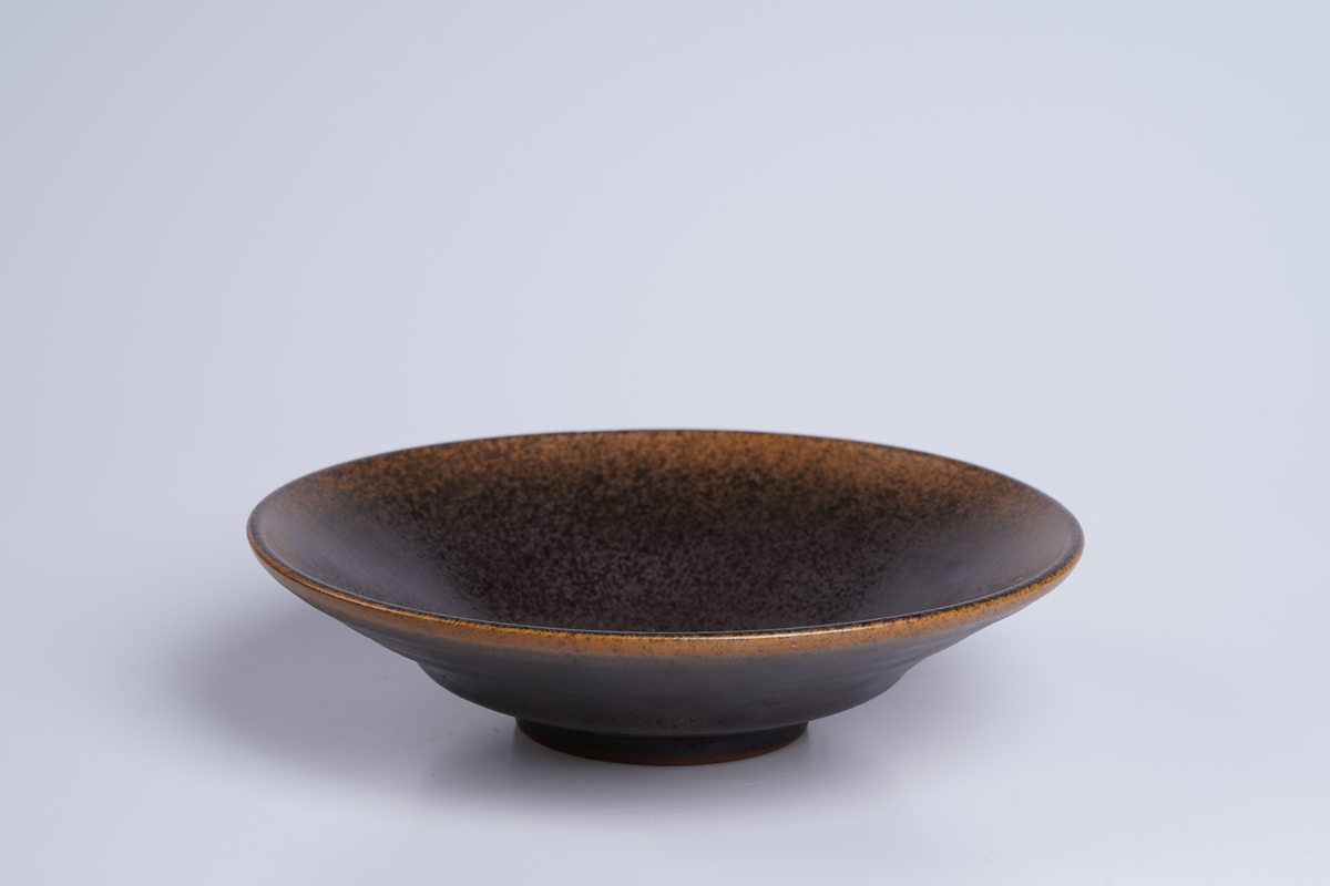 复古喷黄斗笠盘